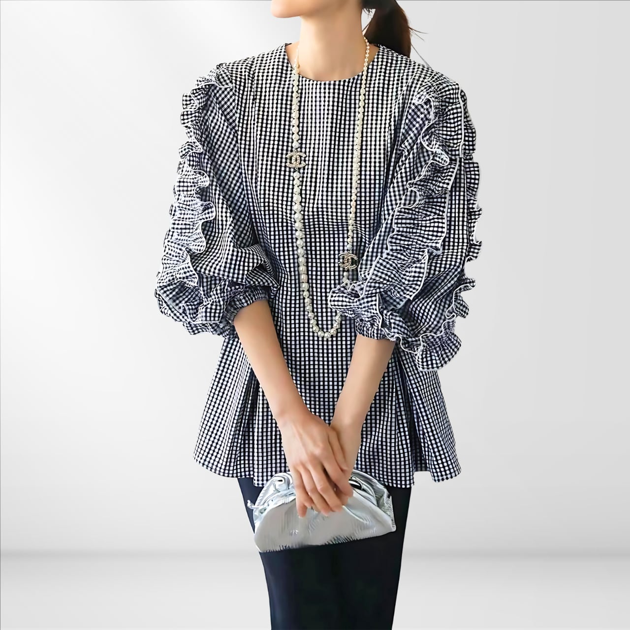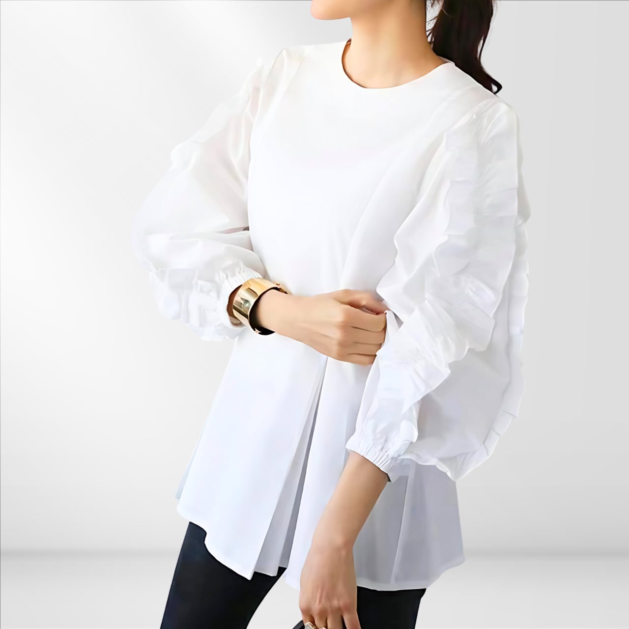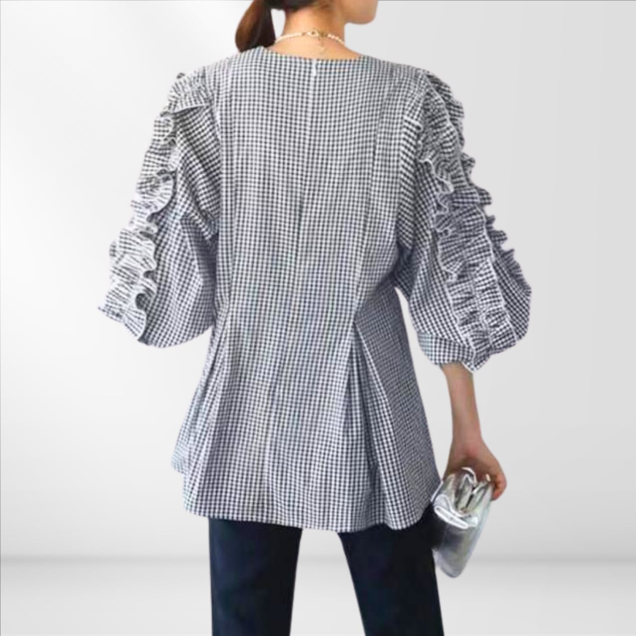 ふんわりと揺れるフリルスリーブが印象的なブラウス。