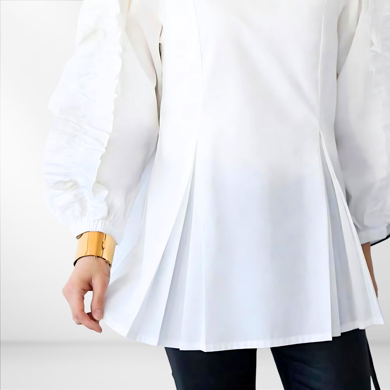 袖フリル プリーツブラウス