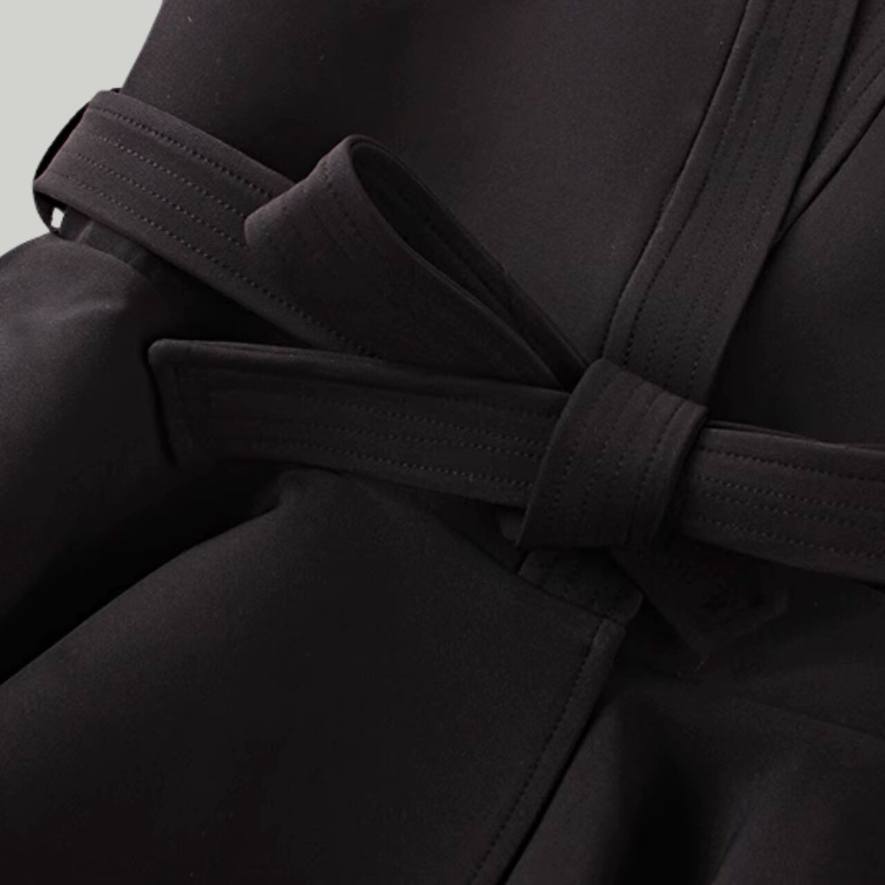 計算されたシルエットと、さりげなくウエスト位置を整えるリボンデザインが、