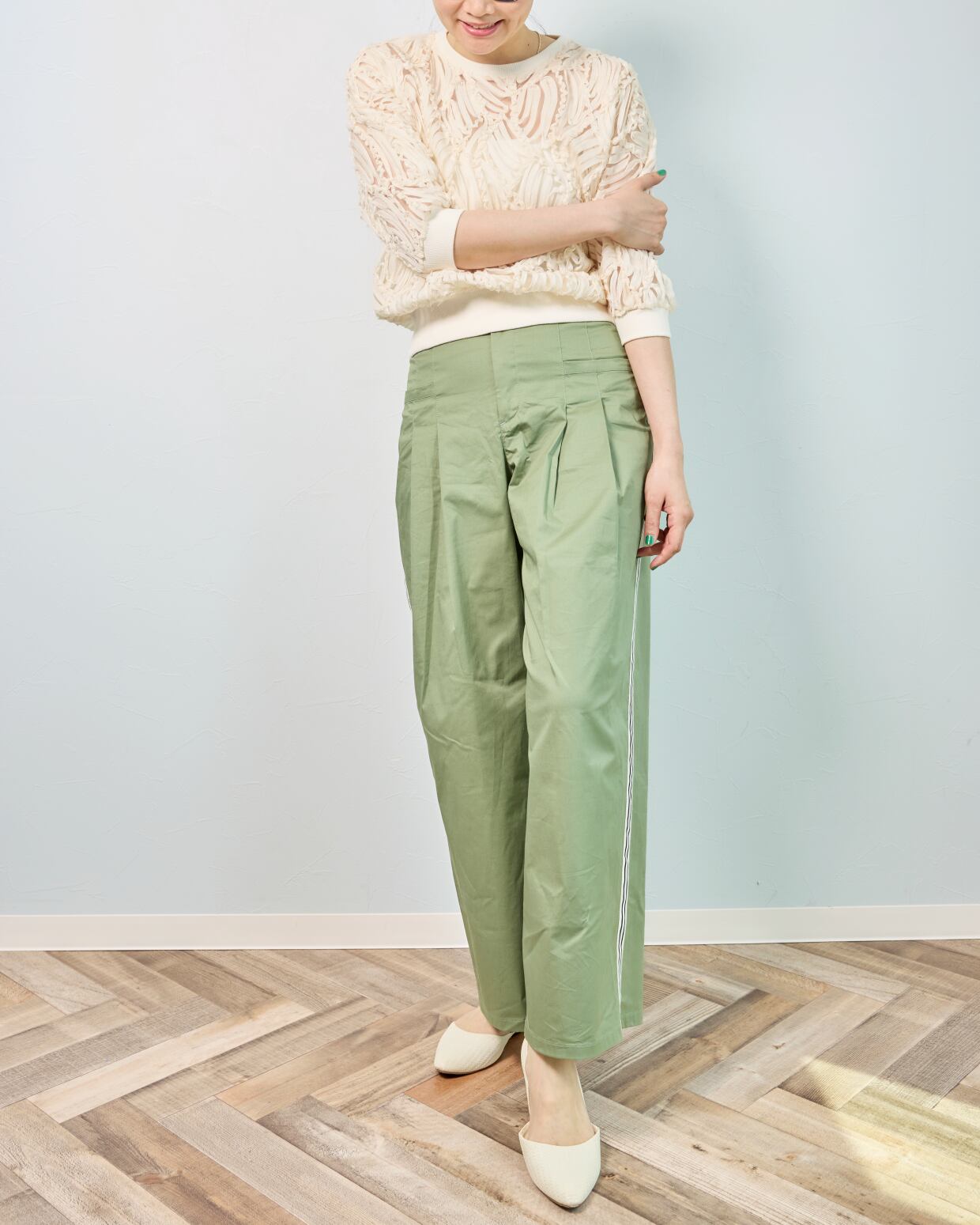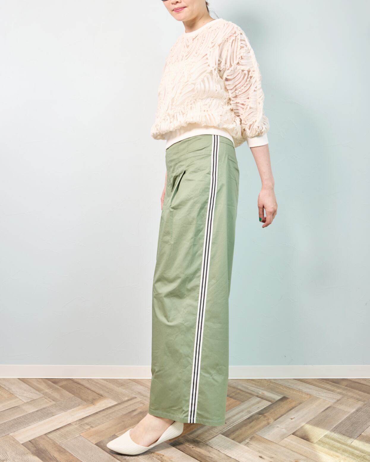 ✔ ウエストタックでお腹まわりを自然にカバー