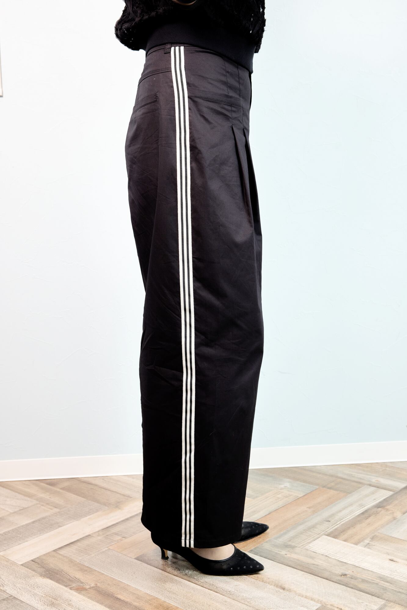 ヒップや太ももまわりも拾わず、どの角度からも美しく見える一本。