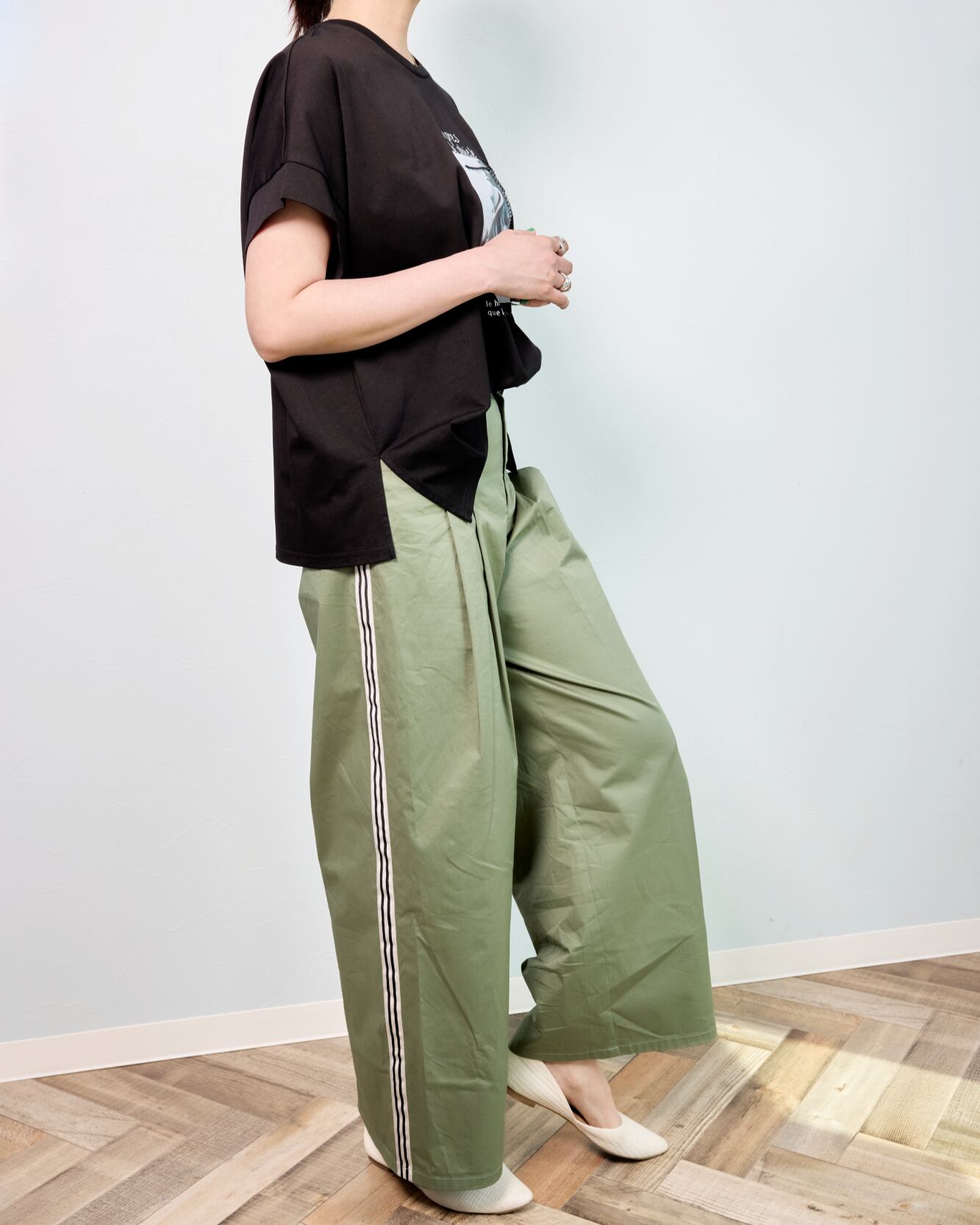 ✔ ワイドすぎない絶妙なラインで、通勤やお出かけにも◎