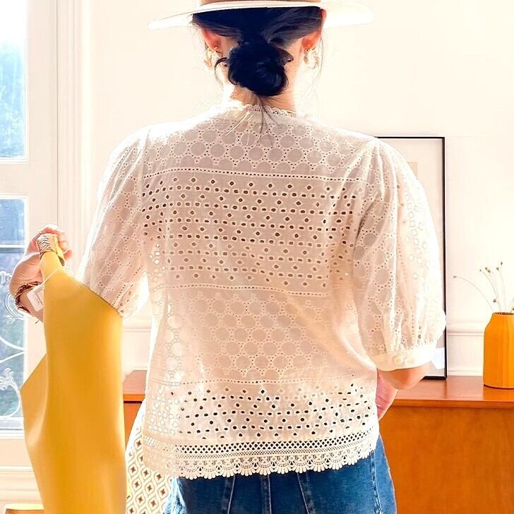\刺繍×レースの上品ディテールが映える、夏の主役ブラウス/