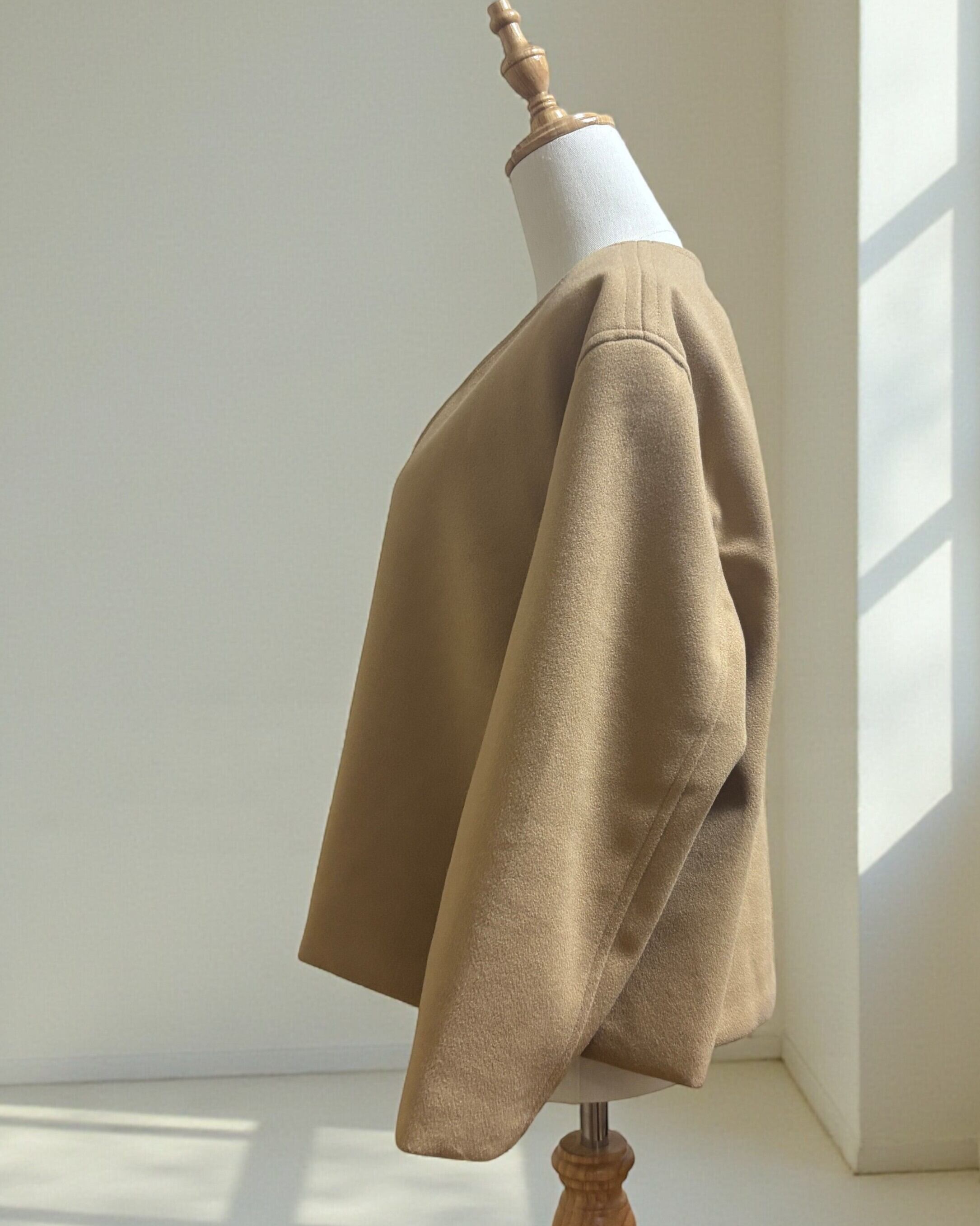重たく見えにくく、さっと羽織りやすい一枚。