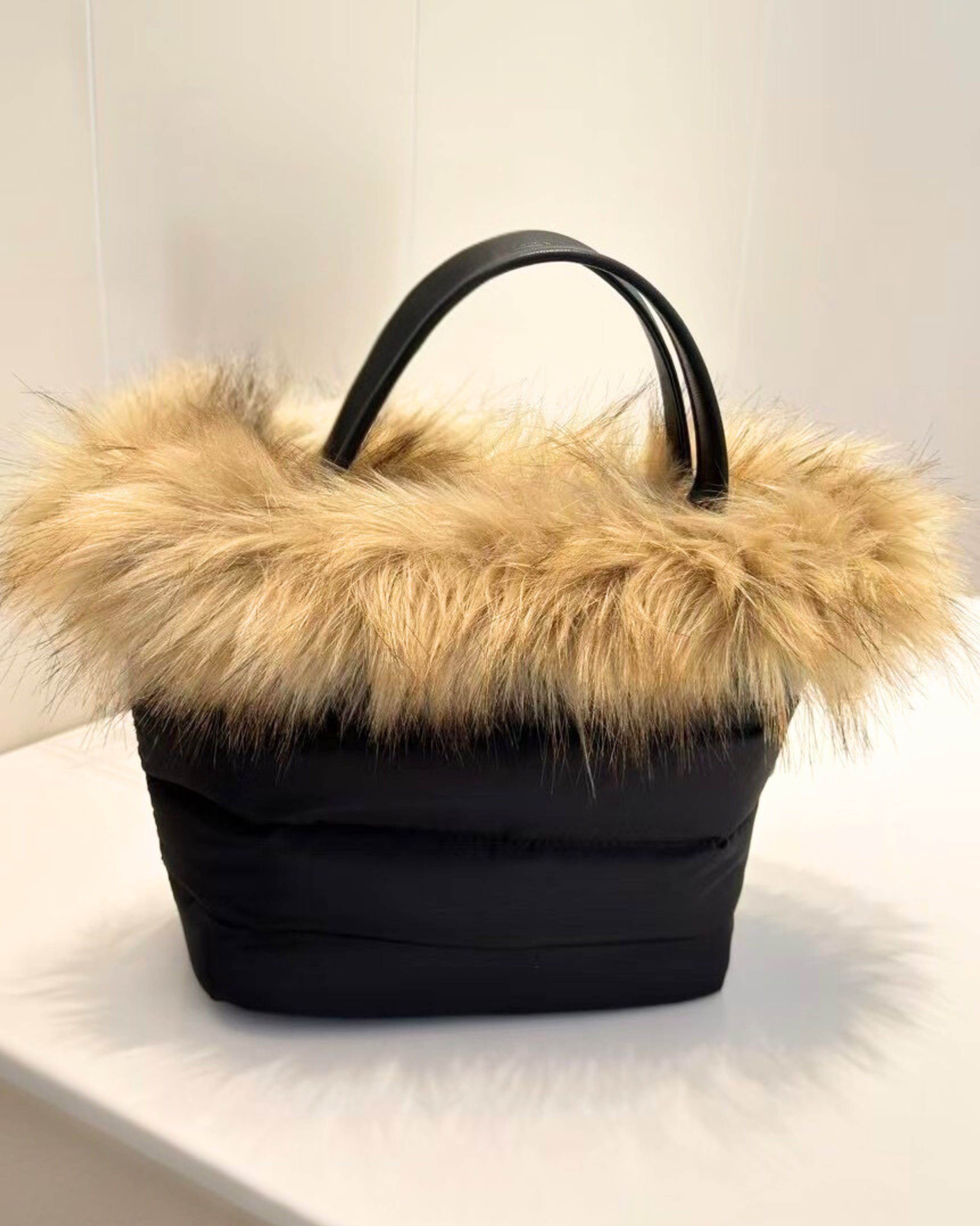 ふわふわとしたファー素材と、キルティングの異素材ミックスが